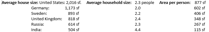 Our research says American citizens are used to very large homes compared to the rest of the world, on very large lots: